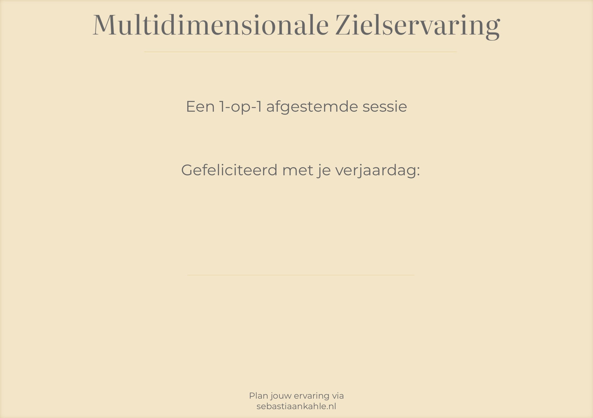 Met deze Multidimensionale Zielservaring schenk je een persoonlijk afgestemde 1-op-1 sessie waarin healing, reading en satsang samenkomen.